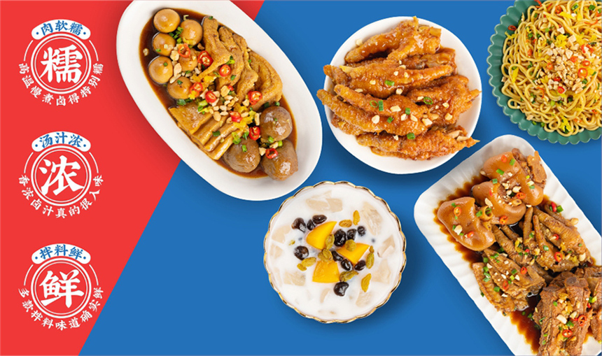 其主打产品如香糯猪手、吮指排骨、香糯小翅尖、招牌卤面、小食组合、特色冰粉等深受广大消费者喜爱;更有首创招牌产品虎皮糯爪爪,先炸后卤的独特出品方式,造就外香里嫩的口感,让热卤更糯更入味的口号成为了品牌的实体展现。
