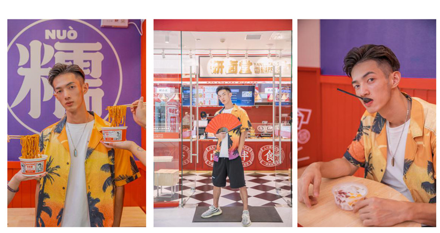 研卤堂的国潮,并不只是在空间上的单一呈现,而是注入了更深层次的文化属性。通过打造IP形象少堂主(这一形象,乍一看,和中华小当家神似),从而使品牌和顾客产生情感的共鸣。